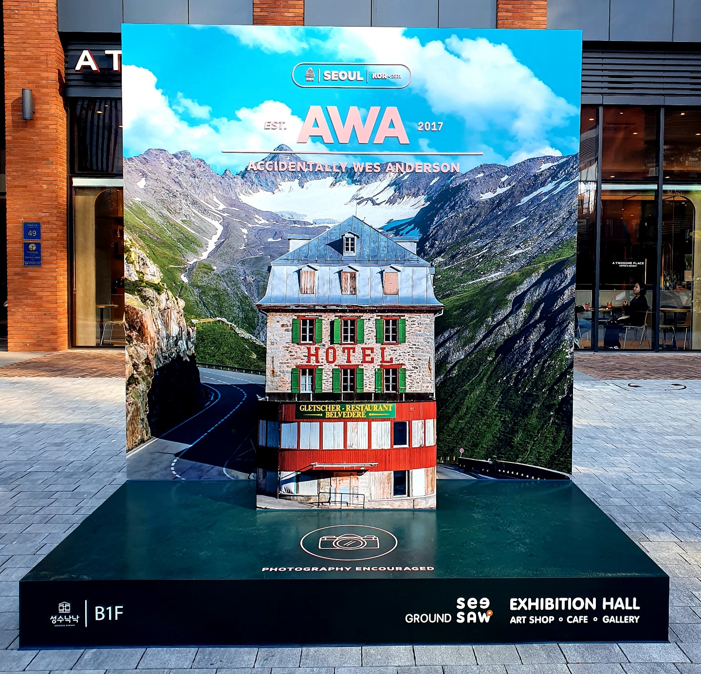 이번 그라운드 시소 성수에서 열린 <우연히 웨스 앤더슨 : 에디에 있든, 영감은 당신 눈앞에 있다> 전시회는 여행 사진 커뮤니티인 우연히 웨스 앤더슨(Accidentally Wes Anderson)의 국내에서 열리는 첫 대규모 전시입니다. 유럽, 중아아시아, 북미 등 전 세계 풍경사진 300여 점을 우연히 웨스 앤더슨의 스타일로 감상하실 수 있습니다.